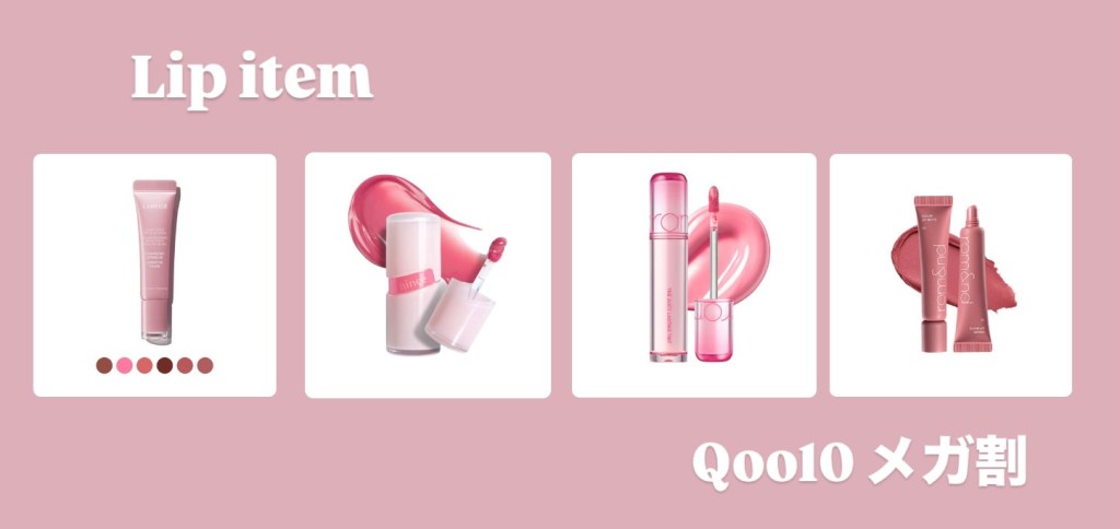 続きまして、リップアイテム!必ずメガ割の時は1本リップが欲しくなります!